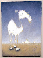 This should give a better idea of the direction the painting is headed (compared to the underpainting post). The underpainted background is overpainted (is that a word?), and now the sky is blue/purple and the sand is yellow/tan. Hopefully it makes more sense now.
